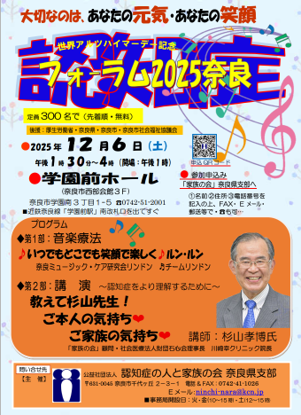 【認知症フォーラム2025奈良】知ろう 語ろう 支え合おう! 公益社団法人認知症の人と家族の会 奈良県支部