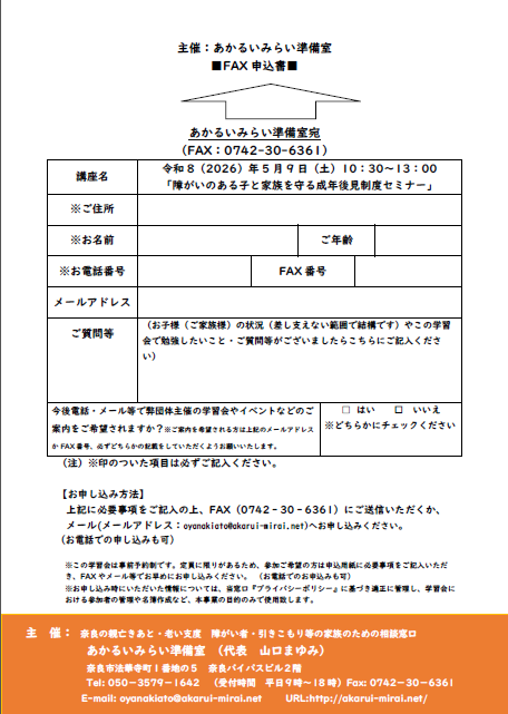 5/9『家族の安心・笑顔のための 障がいがある子と家族を守る遺言作成のポイントセミナー』